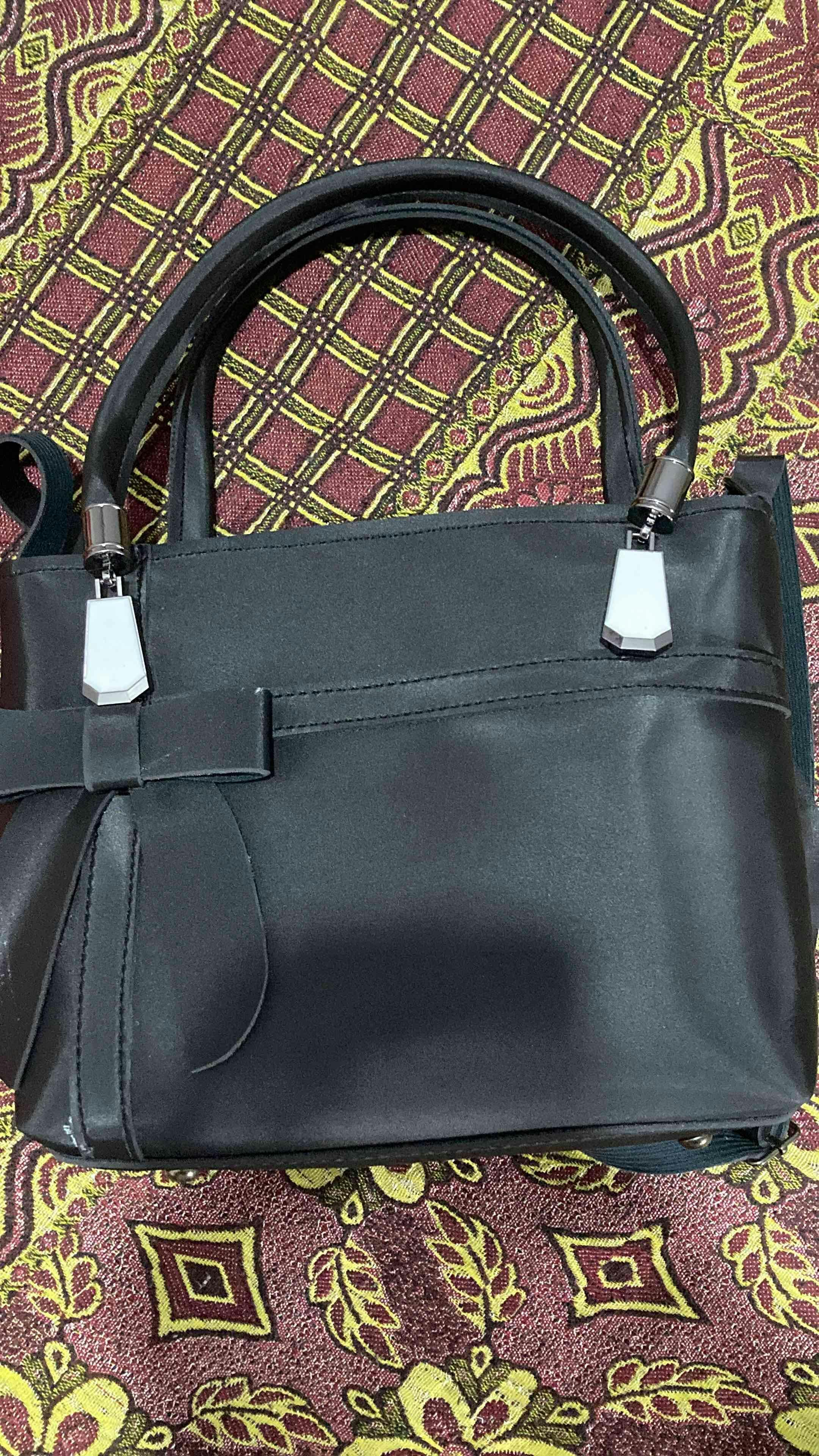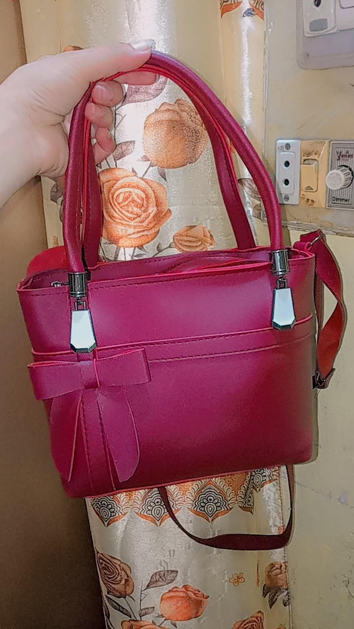 Crafted from premium faux leather, this beautifully structured handbag features a charming bow accent and polished silver-tone hardware. Its soft blush pink color makes it the perfect statement piece for casual days, office wear, or special occasions.